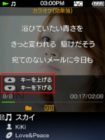 楽曲の音程を上下それぞれ6段階まで調整することが可能。カラオケマシンのように自分のキーにあわせて歌えます。