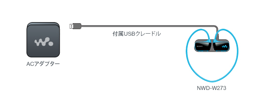 別売のACアダプター(AC-NWUM60など)を使えばPCなしでAC電源からも充電できます。