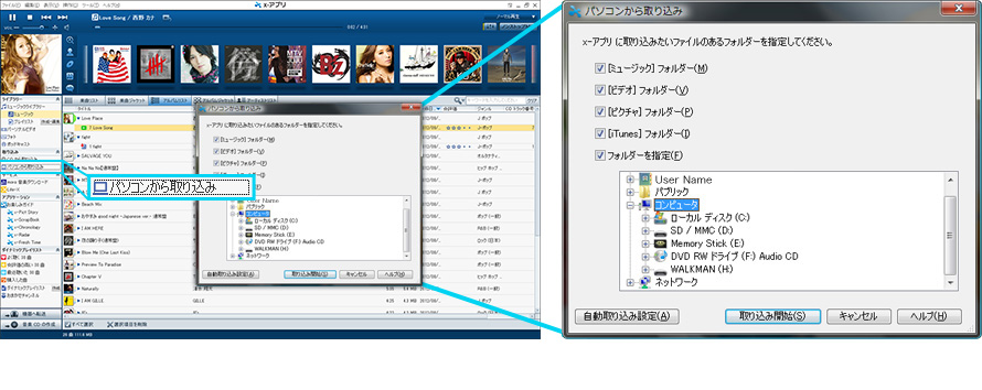 ⇒ “ウォークマン”で直接録音した楽曲の取り込み方について詳しくはこちら