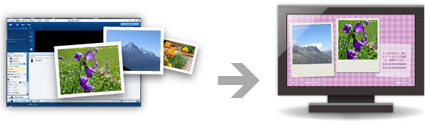 「x-アプリ」に取りこんだ写真と楽曲を使って、デザイン演出効果の付いたプロモーションビデオのような作品を作れます。さらに、作成した動画コンテンツは、“ウォークマン”に転送して楽しむこともできます。