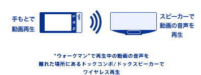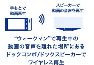 YouTubeTMの動画やブルーレイディスクレコーダーなどから“ウォークマン”へ転送した動画の音声も、ドックコンポ/ドックスピーカーで再生できます。手もとの“ウォークマン”でスポーツなどの映像を見ながら、実況や解説、スタジアムの歓声は部屋中に広がるドックコンポ/ドックスピーカーのいい音で楽しめます。
