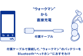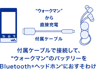 Bluetooth®ヘッドホン*のバッテリーが切れても“ウォークマン”から直接充電できるので、いざというときに便利です。