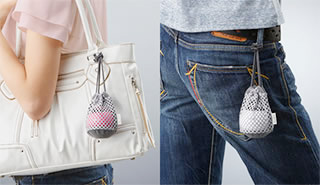 SRS-BTV5なら手のひらサイズのコンパクトボディ。内蔵充電池と、キャリングポーチでいつでも持ち歩けます。