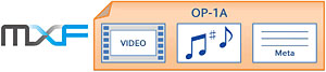 オペレーションパターンはOP1aを採用しています。MXF OP1aは映像・音声・メタデータを1つのファイルとして扱う構造のため、ファイル転送のワークフローに最適で、XDCAM以外でもノンリニア編集機やサーバーなどシステム間でファイル伝送を行うフォーマットとして幅広く採用されています。