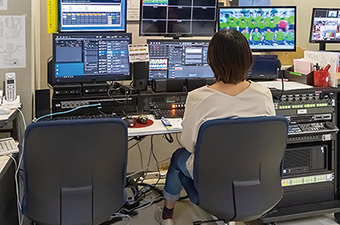 毎日お昼の2分半ほどのニュース、夕方の40分のニュース番組、そして夜8時55分からのショートニュースの3本のほか、JリーグのPR番組を今回、導入された新システムで制作しています。