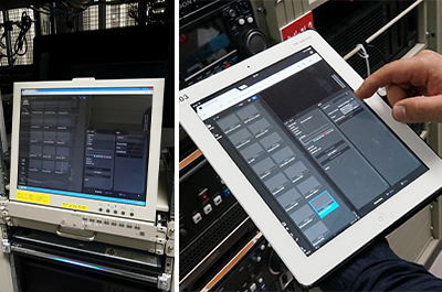 局内ラックに設置されたストリーミングレシーバーPWS-110RX1(写真・左)。設定操作はタブレット端末より行われます(写真・右)。
