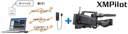 XDCAM HD422カムコーダーと同様に、Wi-FiアダプターCBK-WA01を装着することにより、メタデータワークフロー“XMPilot”に対応します。Wi-Fi経由でのプランニングメタデータの送信や、収録中にプロキシAVデータを確認したり、映像のしおりとなる“エッセンスマーク”を入力するなどの、ライブロギング/ライブビューイングが可能になります。