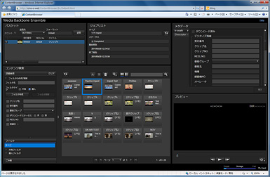 操作画面もオープンを重視してWebブラウザを使用しています。ブラウザの表現力を極限まで活用しつつ、場所、機器を選ばないWebブラウザの利点を利用して、お客様の映像ファイルやメタデータ、業務データ、様々な機器を様々な方法で扱うことができます。