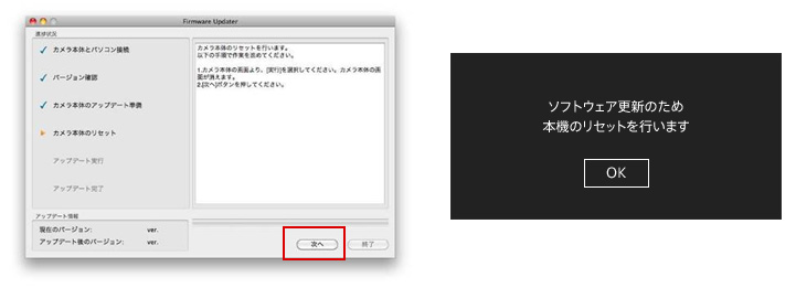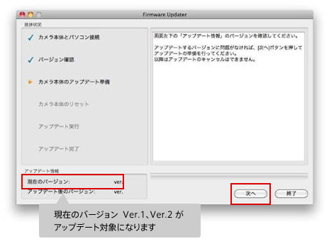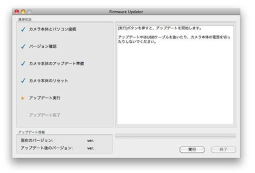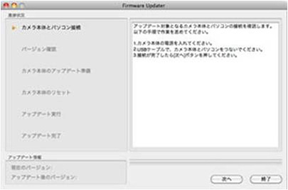 注意: アップデート完了後は、カメラ本体の電源を切って電源を入れなおしてください。