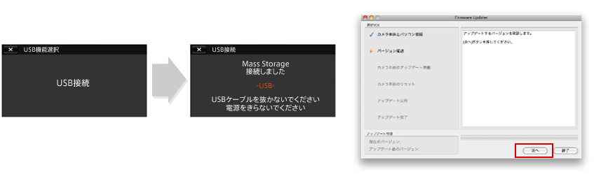 注意: アップデート中は絶対に電源を切ったり、USB接続を外さないで下さい。