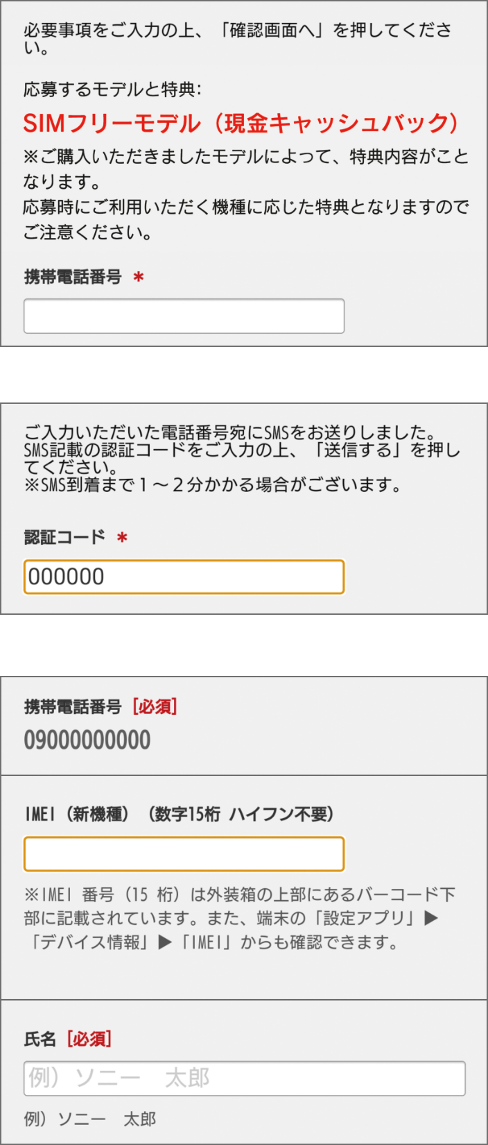 * 既に本キャンペーンに応募済みのお客様は、端末交換を行っていてもキャンペーン応募時に登録の電話番号宛にSMSで特典受け取りのご案内を致しますので、交換端末での再応募やキャンペーン事務局へご連絡いただく必要はございません。