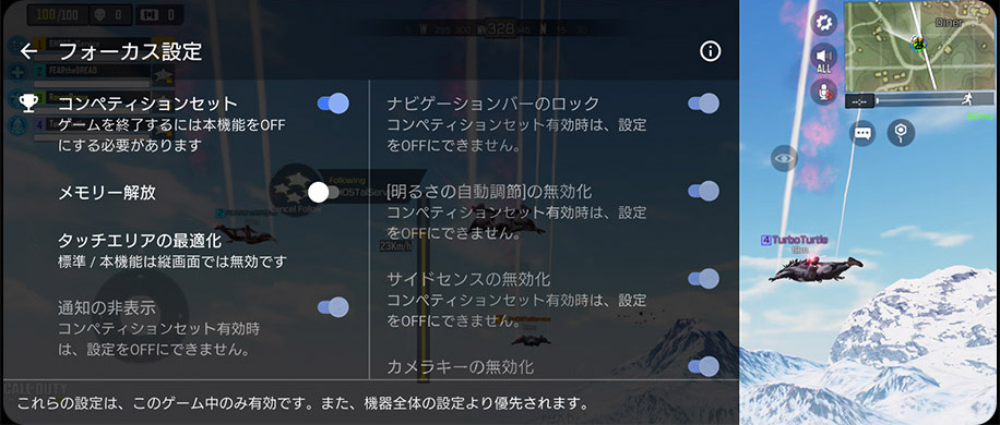 不要な通知や機能をオフにして、ゲームに没入できる環境を構築します。