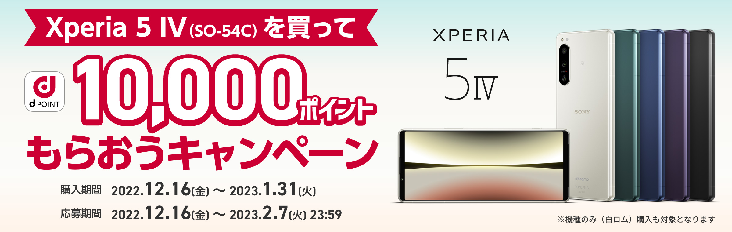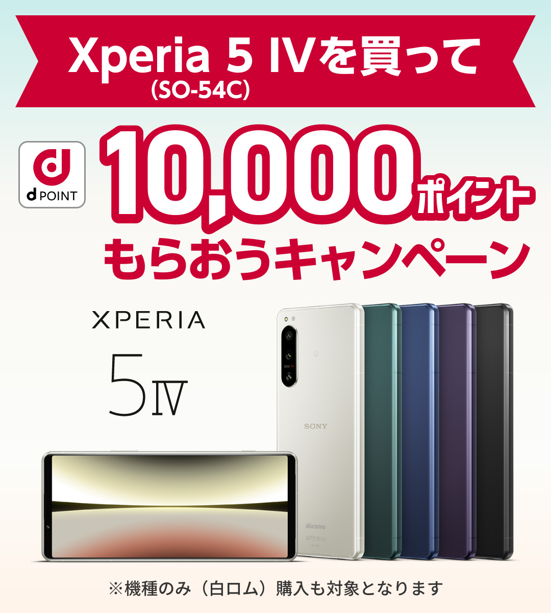 キャンペーン期間内にドコモでXperia 5 IV(SO-54C)を購入でもれなくdポイント 10,000ポイントをプレゼント。
