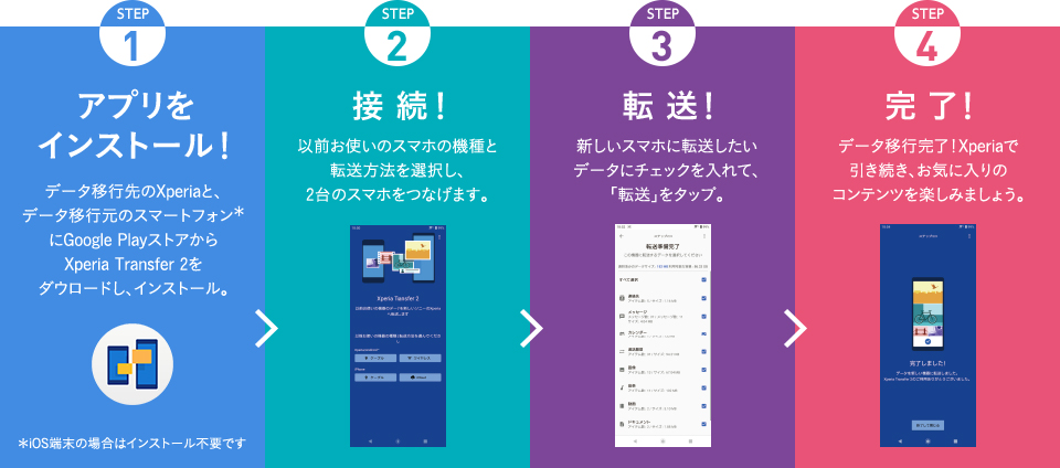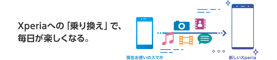 新しいXperiaへお乗り換えの際に必要なデータを簡単に移行することができます。