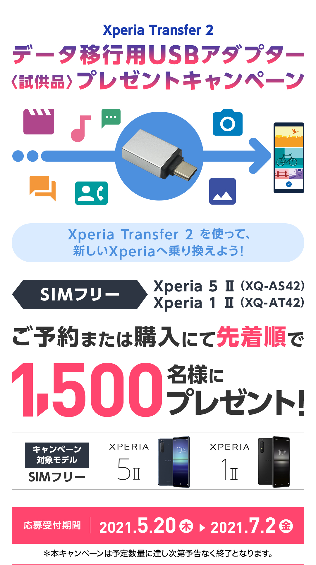 Xperia Transfer2 データ移行用USBアダプター<試供品>プレゼントキャンペーンは、