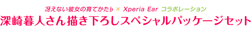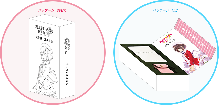 仕様内容は、Xperia Ear本体/Xperia Ear本体を収納できるオリジナルケース/Xperia Ear プラグイン(恵)ダウンロード用Playストアカードを深崎暮人さん描き下ろしデザインのスペシャルパッケージにてお届けします。