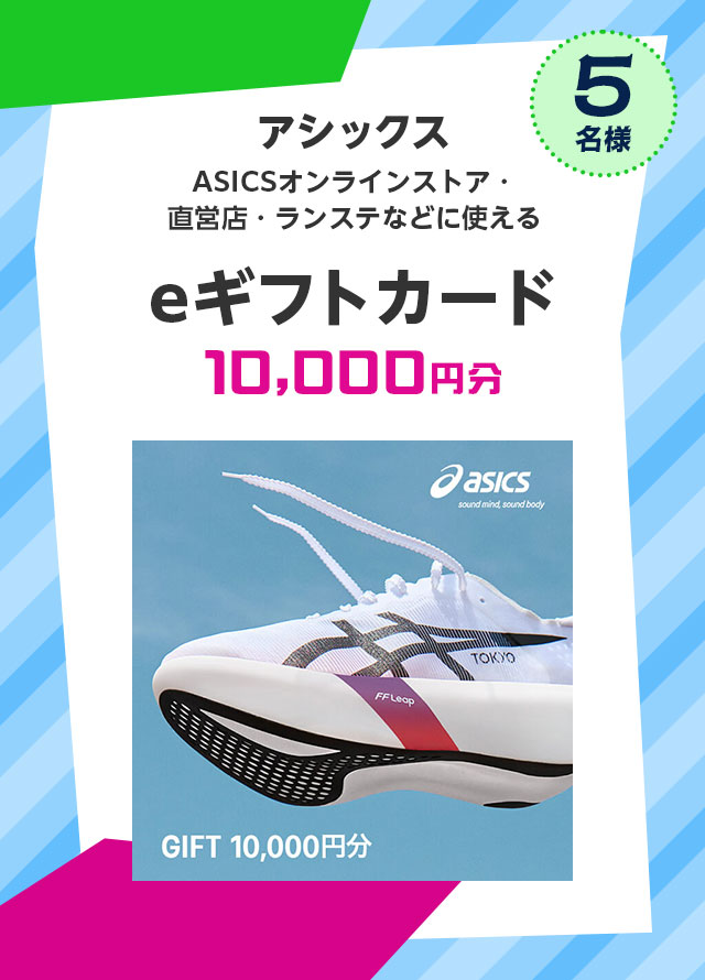 ・<抽選で5名様>アシックス ASICSオンラインストア・直営店・ランステなどに使えるeギフトカード10,000円分