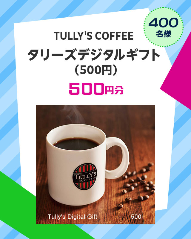 ・<抽選で400名様>TULLY'S COFFEE タリーズデジタルギフト(500円)