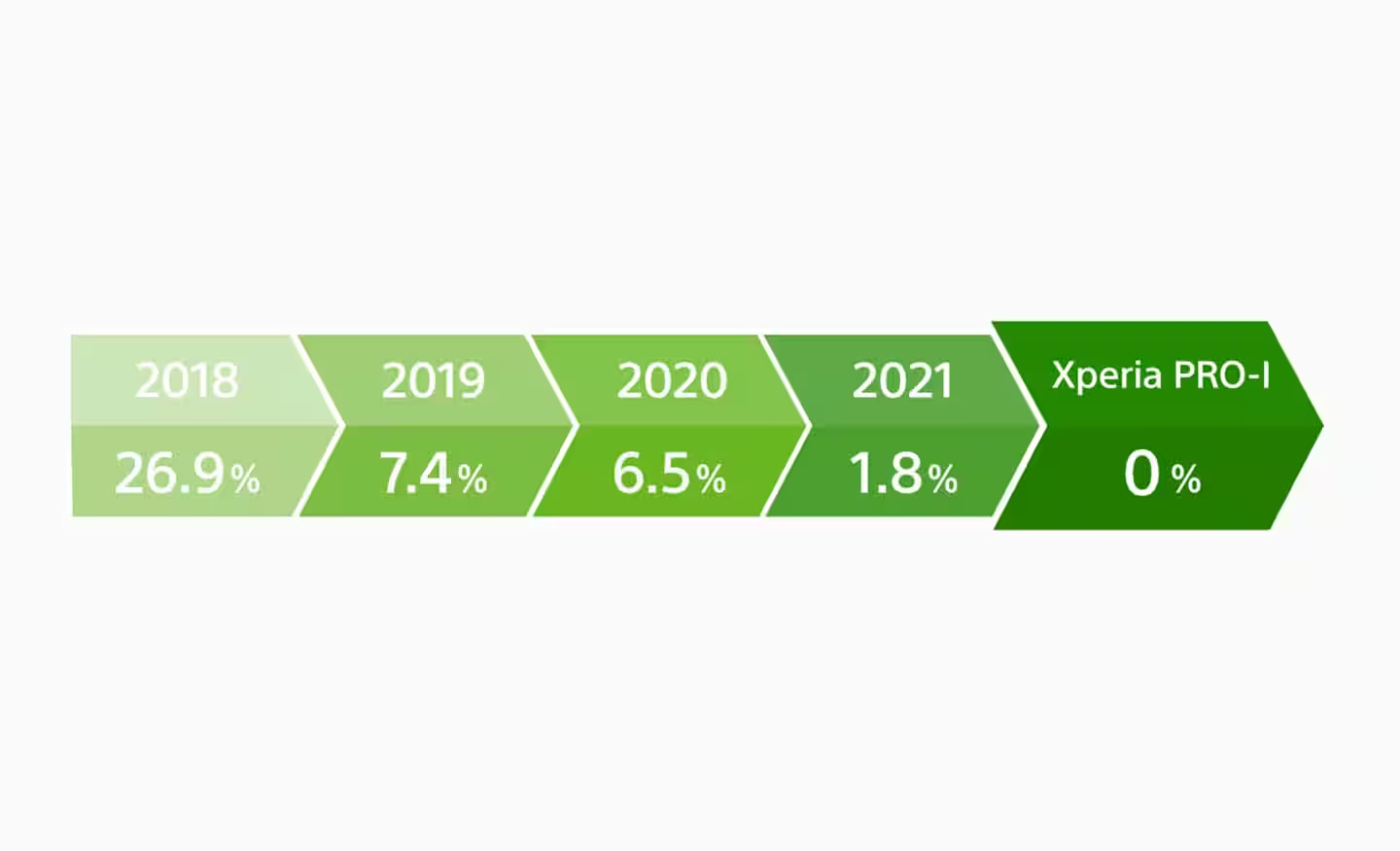 Xperiaのパッケージに関する環境負荷の削減に注力して数年が経ちましたが、当初はパッケージの構成材でも大きなものしかプラスチックから紙へ切り替えられませんでした。その結果、Xperiaの2018年モデルでは、依然としてパッケージにプラスチックが約27%使用されていました。しかし、時間が経つにつれてソニーのプロセスは進化しました。今では、最も小さいパッケージ部品からでさえプラスチックを排除できるようになり、Xperia PRO-I のパッケージでプラスチックゼロを達成しました。*3