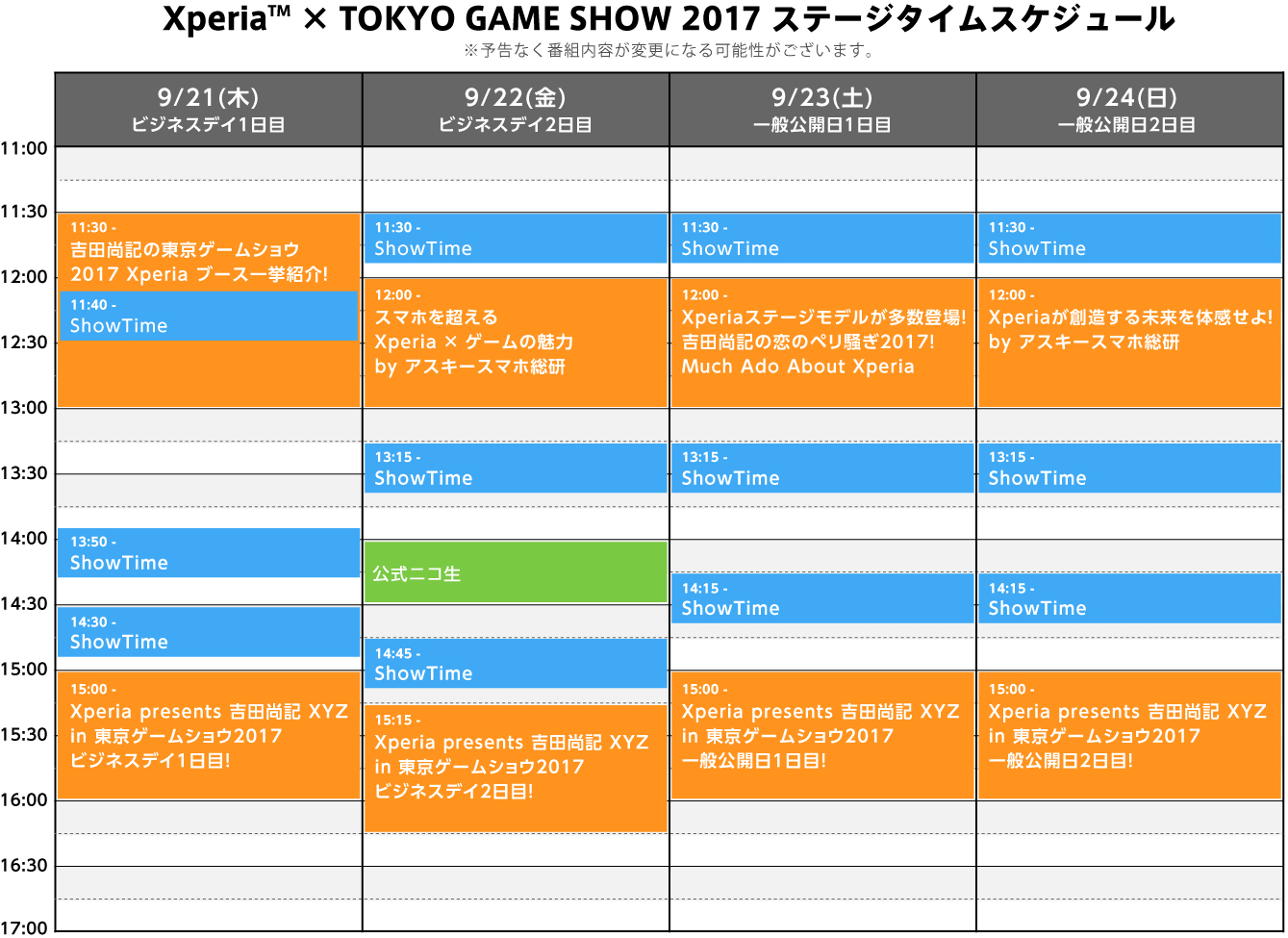 2017.09.20 タイムスケジュールを公開しました。