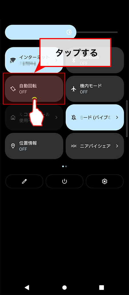 「自動回転」のアイコンをタップして、「自動回転」のON/OFFを切り替えます。