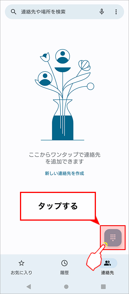 登録してある連絡先から、かけたい相手の名前を選び、電話番号をタップすれば電話がかかります。