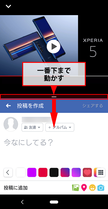 マルチウインドウのメイン・サブ画面の分割サイズは、画面を区切っているバーをタップしたまま上下へ動かすことで調整できます。