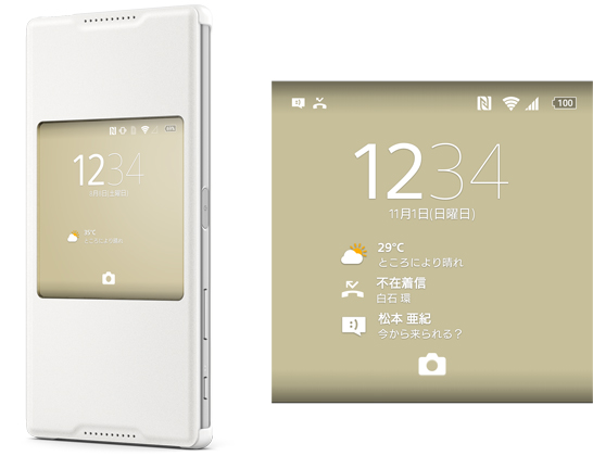 カバーを閉じた状態では、日時、天気、不在着信情報やショートメッセージなどの表示が可能です。