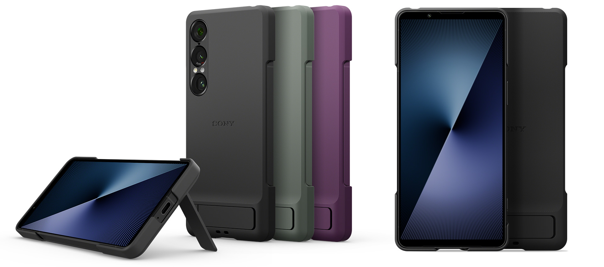 Xperia 1 VIIのカラーに合わせた スレートブラック / モスグリーン / オーキッドパープル をご用意。