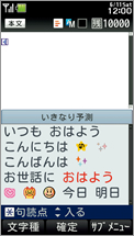 文字キーを押さなくても、メールの冒頭に入力したことのある候補が表示されるので、いつも使うフレーズをすぐに入力できます。