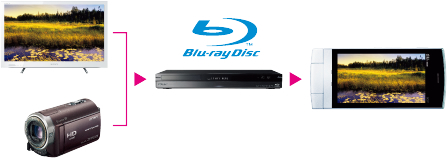 ソニーのブルーレイディスクレコーダー*2に録画した高画質の動画コンテンツや“ハンディカム”で撮った映像をブルーレイディスクレコーダーを使ってケータイへ転送できるおでかけ転送が、ビットレートの向上とVGA化により、より美しい映像をケータイでお楽しみいただけます。