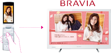 携帯電話やパソコンから<ブラビア>に写真とメッセージを送信できる