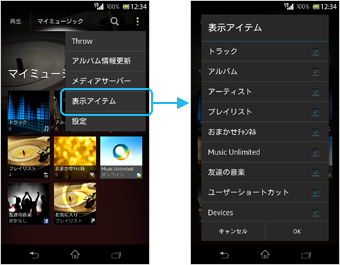 マイミュージックの一覧に表示するアイテムの種類を自分で選択することができます。