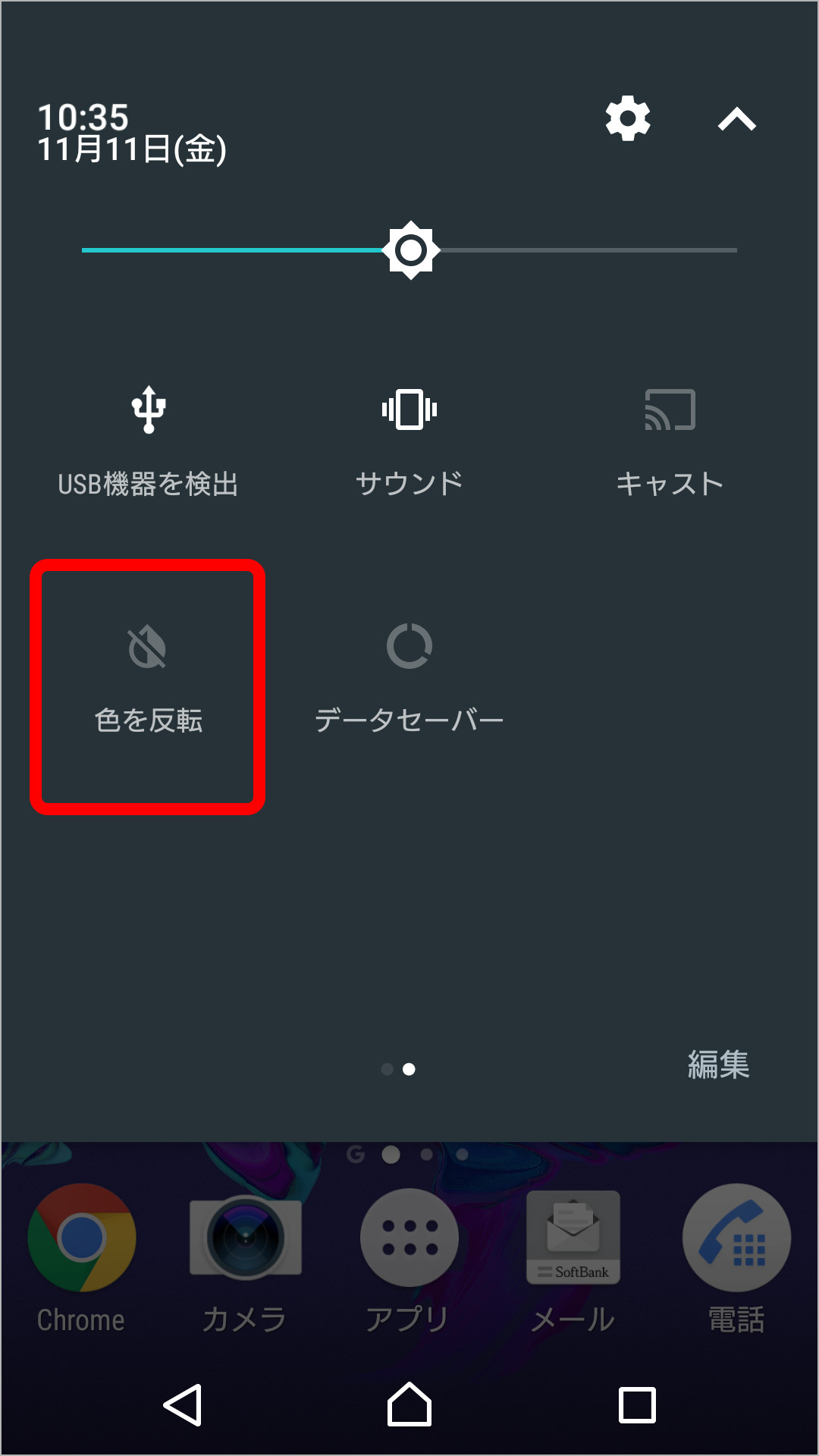 新タイルの追加 (色を反転、データセーバー)