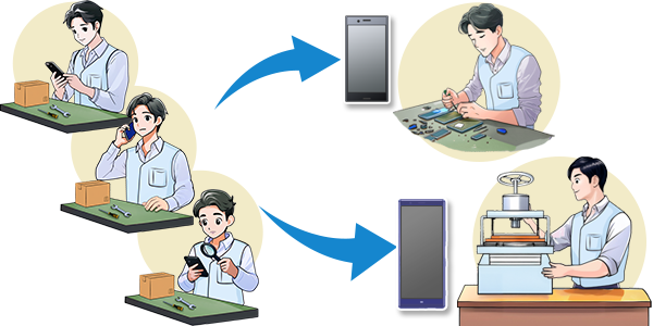 修理担当者の診断に基づき、Xperiaモデルごとに修理を行います。