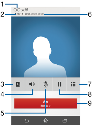 (マイク)の消音のオン/オフ 通話相手の電話番号