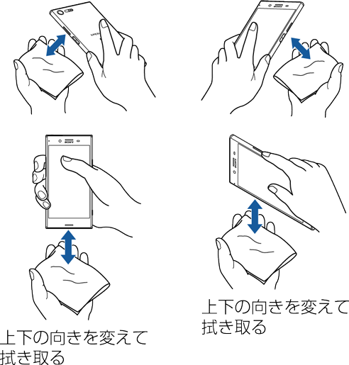 • 受話口/スピーカー、送話口(マイク)、スピーカー、セカンドマイク、ヘッドセット接続端子に水滴を残さないでください。通話不良となるおそれがあります。