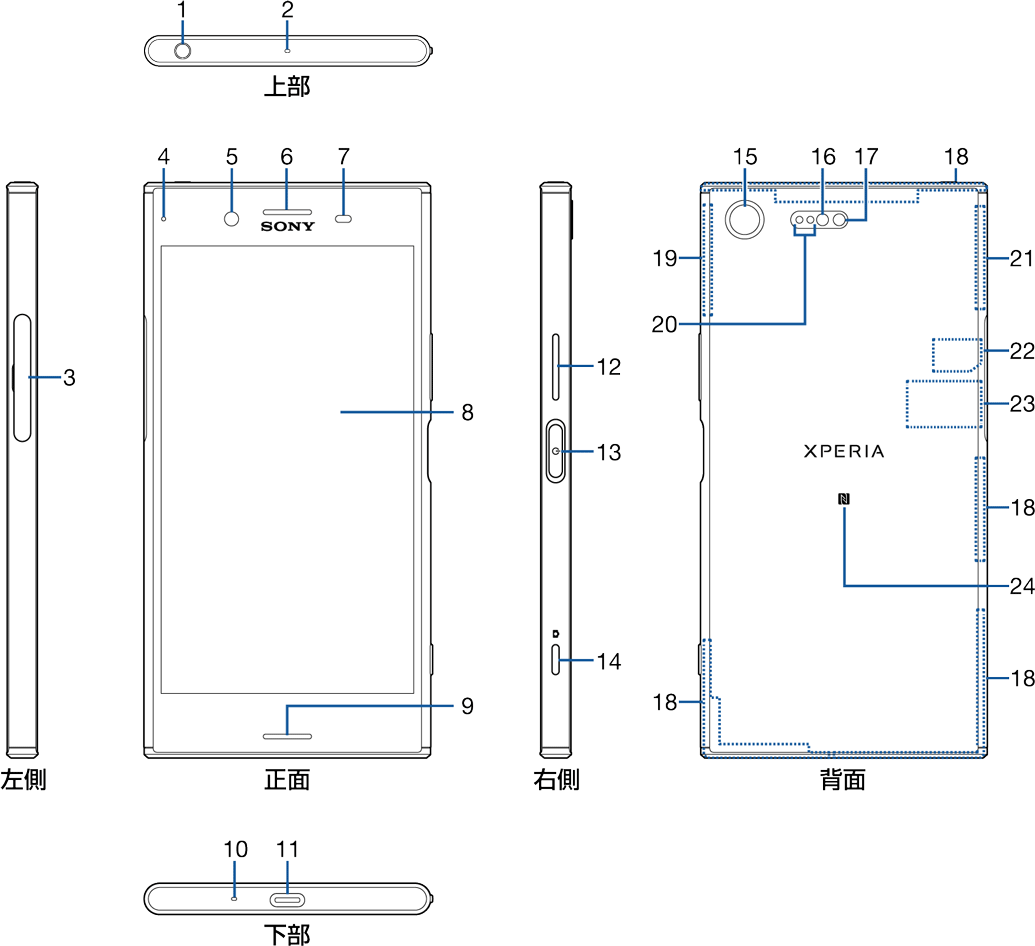FCC IDなどの情報が表示されていますので、 銘板プレートは取り外さないでください。 アンテナは本体に内蔵されています。アンテナ付近を手で覆うと通信品質に影響を及ぼす場合があります。
