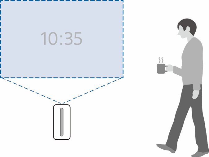 壁に映す向きに本機を設置している場合のみ人感センサーが働きます。テーブルや床に映す向きに本機を設置している場合に人感センサーが働くように設定することもできます (こちら)。