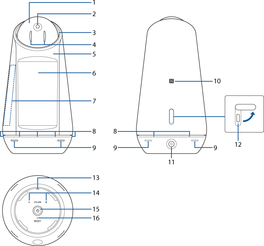 マイク/照度センサー/人感センサー/温度・湿度センサー上にシールなどを貼って遮らないでください。