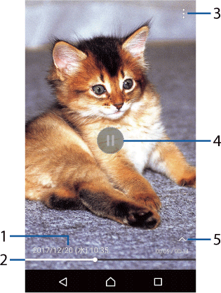 撮影日時などの情報やオプションメニューのアイコンなどが表示されます。