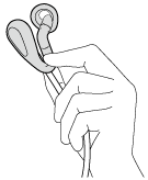 イヤホン部が耳の後ろにくるようにはさみ、下から耳たぶに沿わせながら、リングサポーターを耳の穴にはめる