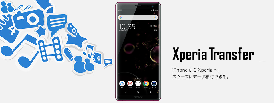 ソニーモバイルが提供するデータ移行機能の一つです。「Xperia Transfer」により、お使いのスマートフォン(iPhone含む)から、音楽や写真、連絡先などをXperiaに移行することができます。Xperia Transferは、パソコン経由または、スマートフォン間のどちらにおいてもデータを移行できます。