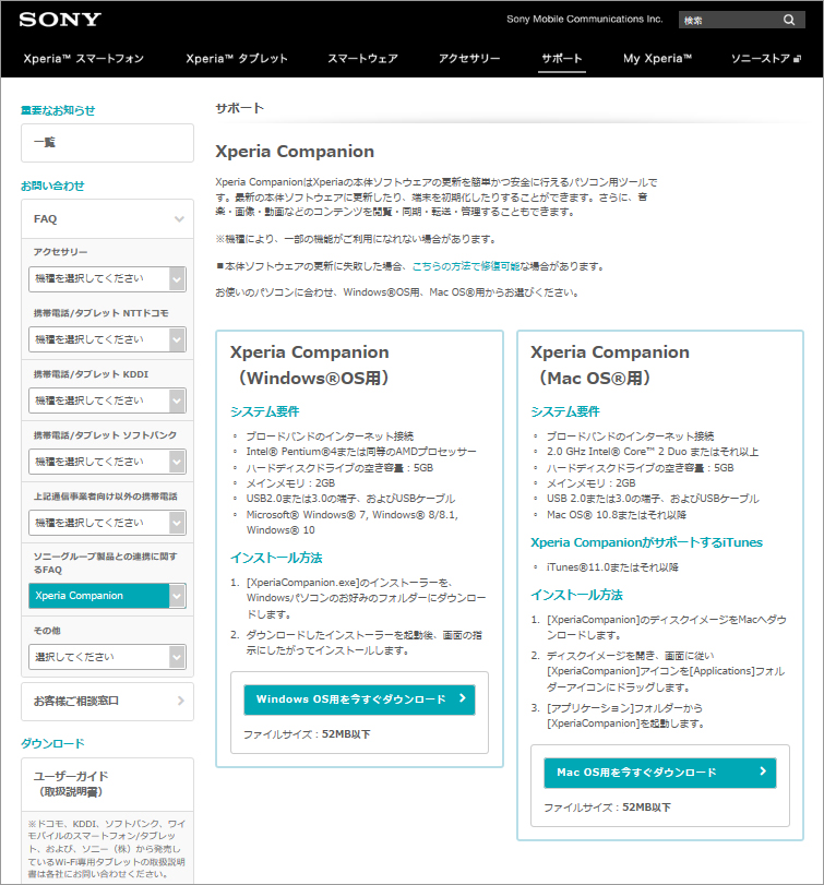 Xperia Companionサポートページはこちら。
