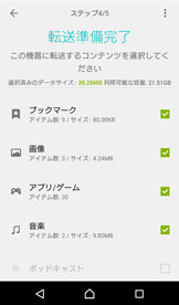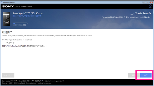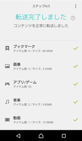 転送が完了しました。Xperiaで転送されたコンテンツをご確認ください。